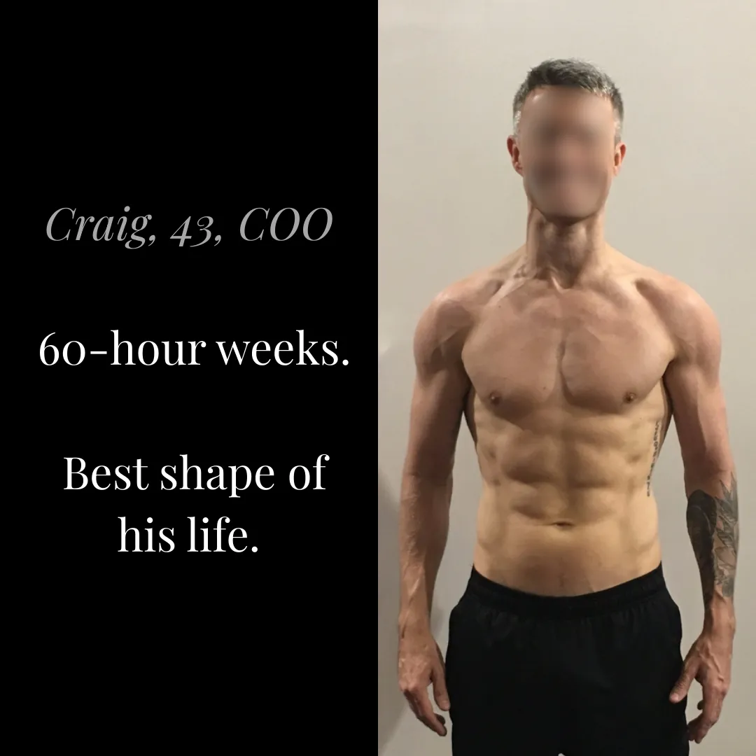 If your body matched your work ethic, your team would feel it. Your presence would carry more weight in the room. Your kids would notice the energy. Your partner would feel the difference. This isn’t about vanity; it’s about operating at the level you say you want.